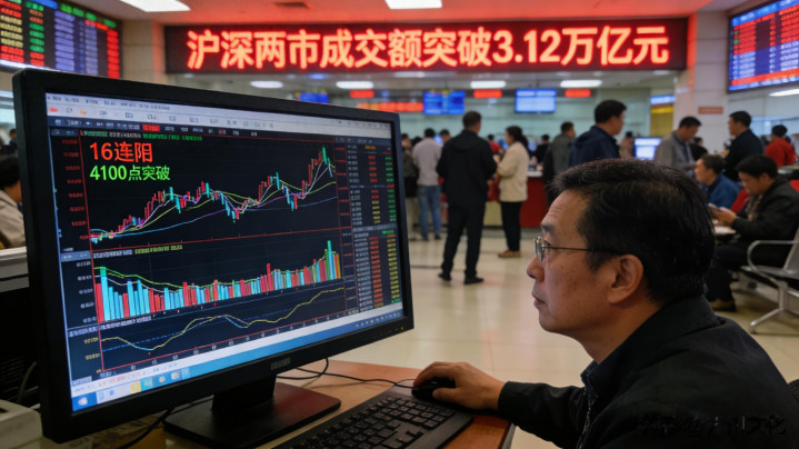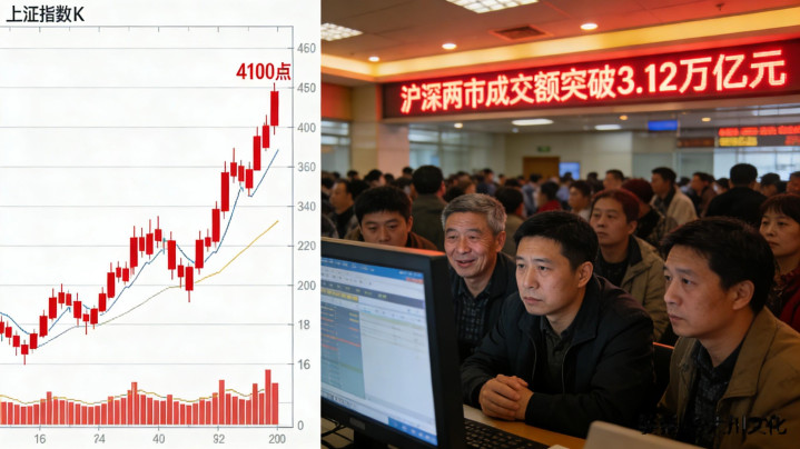 时隔十年,上证指数再次突破4100点,16个交易日全线飘红,两市成交额突破3万亿元,这些数字在2026年开年点燃了投资者的热情。