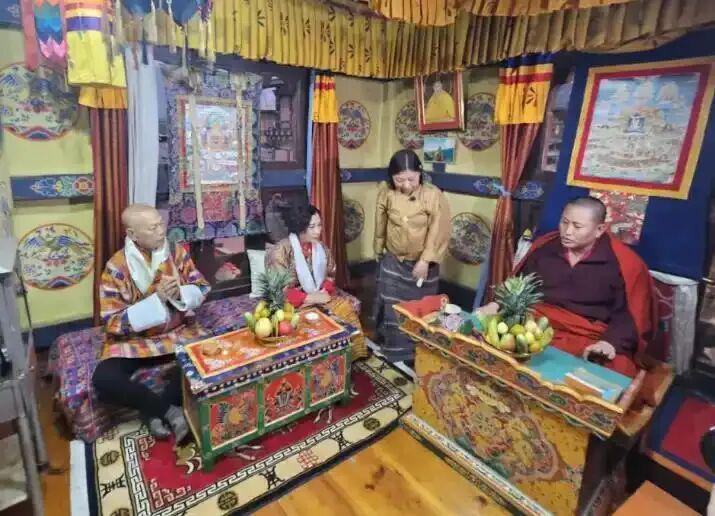这倒是让她觉得很惊喜,现场的气氛甜蜜又温馨。两人穿上不丹的服装,一起诚心祷告,还与当地的居民载歌载舞。